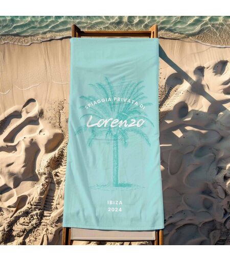 Telo Mare Personalizzato con Palma e Testo; Asciugamano in microfibra con supporto in cotone; Extra assorbente e delicato sulla pelle; Materiale anteriore: 100% microfibra; posteriore: 100% cotone; Può essere lavato a 40°C in lavatrice; Dimensioni dell'asciugamano: circa 140 x 70 cm; ...