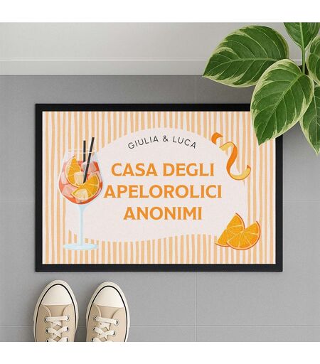 Zerbino Personalizzato Aperol; Materiale: velour; Con supporto in gomma nera antiscivolo; Pulizia: Lavaggio a mano consigliato; Dimensioni totali circa 50 x 75 x 0,2 cm; Peso circa 580 grammi; ...