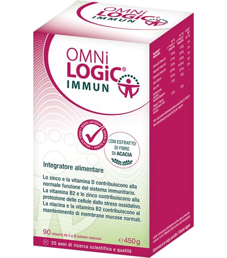 OMNiLOGiC - IMMUN - Descrizione Integratore alimentare con estratto di fibre di acacia a base di zinco niacina vitamina D e vitamina B2 utile per contribuire alla normale funzione del sistema immunitario alla protezione delle cellule dallo stress ossidativo e al mantenimento di membrane mucose … ...