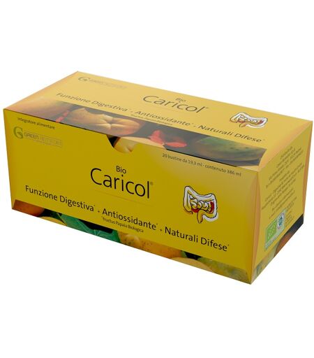Bio Caricol gusto Mango Descrizione Bio Caricol è una preparazione naturale contenente polpa del frutto di papaia biologica matura (Carica papaya L.) non OGM. La purea di frutta di papaia ha attività antiossidante e proprietà di sostegno della funzione digestiva e di tutto il sistema digerente. I ...