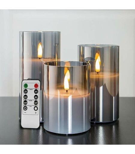 KZQ Candele tremolanti senza fiamma in vetro grigio argento con telecomando, confezione da 3 candele led finte realistiche∅3 ore 4 5 6