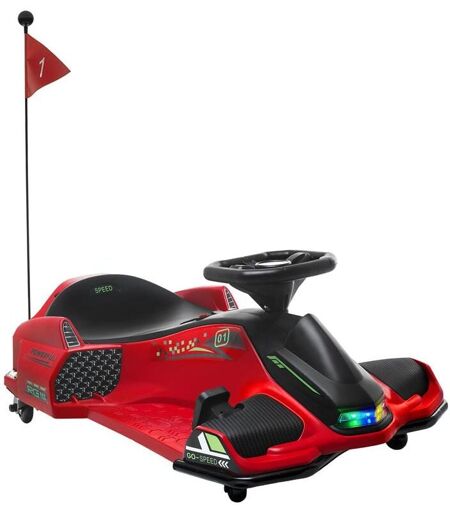 MAURY'S - go kart elettrico per bambini 8-12 anni velocità 3-8 km/h per drifting con luci e musica. rosso
