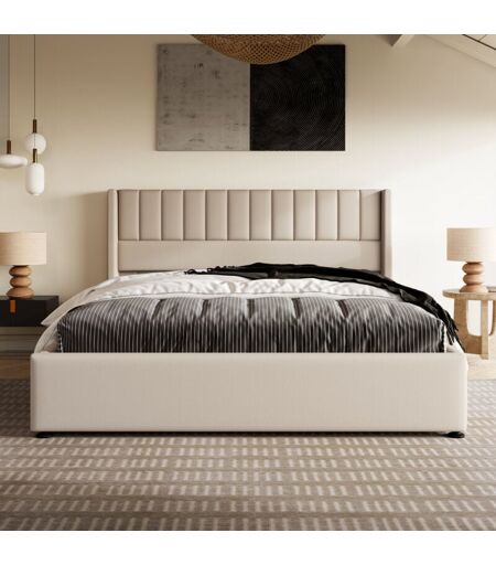 OKWISH Letto imbottito letto contenitore letto idraulico (lino beige 160x200 cm senza materasso), letto con rete a doghe in metallo