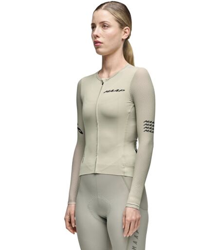 Maap Women's Emerge LS maglia da ciclismo a maniche lunghe da donna con la sua vestibilità compressiva effetto "seconda pelle", ti supporta sia nelle uscite ad alta intensità che nei giri di recupero più rilassati. Realizzata in modo sostenibile con materiali ultra morbidi e traspiranti, offre una sensazione precisa sulla pelle e una libertà di movimento ottimale. tessuto italiano ultra-morbido in nylon riciclato orlo anteriore termosaldato da 45 mm per un look pulito e piatto bordo tasca posteriore termosaldato da 25 mm per ridurre l’attrito tasca interna posteriore con zip termosaldata e profilo basso maniche in mesh a nido d’ape tinta per una ventilazione ottimale stampe riflettenti su petto, schiena e maniche per maggiore visibilità orlo elastico con stampa interna in silicone con logo per una tenuta sicura zip YKK Vislon® Snap Lock – facile da usare, chiusura sicura colletto basso per un look minimalista e comfort superiore tasca posteriore anti-sag – mantiene la forma anche a pieno carico tessuti bluesign® APPROVED – sostenibili e rispettosi dell’ambiente fascia elastica sull’orlo certificata OEKO-TEX® tessuto principale con protezione solare UPF 50+ tessuto delle maniche con protezione solare UPF 15+ ...