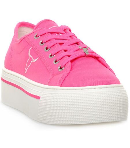 sneaker windsor in tessuto di cotone neonpink con la punta rotonda e lacci. suola in gomma con platform alta 4 cm. ...