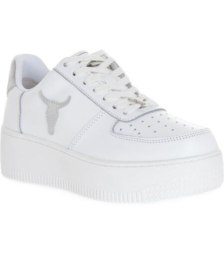 sneaker rich con la tomaia in pelle e fodera in tessuto. linguetta posteriore in metallo oro bianco a contrasto e logo testa di toro in metallo in contrasto flatform da 4 cm. suola in gomma e resistente ed antiscivolo. colore: bianco argento. ...