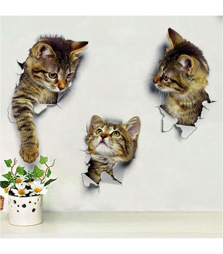 BEBUSINGOTO - adesivi murali autoadesivi 3D a forma di gatti, per bambini, adesivi murali in vinile rimovibili per soggiorno, cameretta, camera da