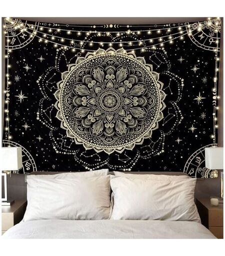 BEBUSINGOTO - Arazzo da parete mandala nero oro, astrologia, estetica hippie, decorazione da parete bohémien, decorazione per la casa, per camera da