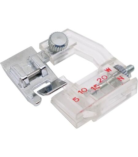 Piedini per macchine da cucire con sistema Snap-On, per twill, nastri, orli e orli La larghezza della piega è regolabile da 5 a 20 mm. Adatto a tutte le macchine da cucire a gambo basso con sistema Snap-On come Alfa, Singer, Juki, Brother, AEG, Silvercrest, Janome, Elna e altre. Non compatibile con sistemi IDT o macchine da cucire industriali. Con questo accessorio per macchine da cucire, è facile creare disegni vivaci su magliette, fazzoletti e una varietà di progetti di cucito. ...