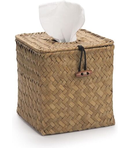 SHINING HOUSE Scatola porta fazzoletti quadrata in erba marina intrecciata naturale per casa, ufficio e auto (naturale, 14x14x14 cm)