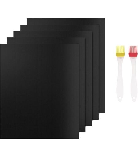 SHINING HOUSE Set di 5 tappetini riutilizzabili per barbecue, teglia antiaderente, accessori per forno per barbecue a gas, a carbone, elettrici (40 x 33 cm), nero