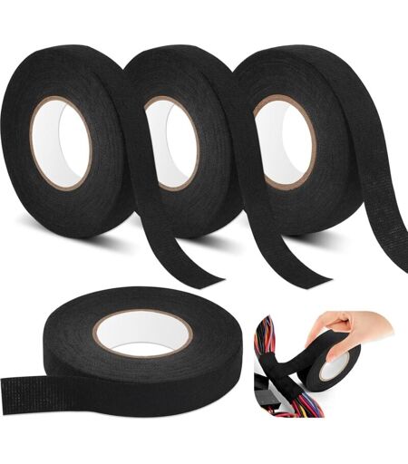 SHINING HOUSE Confezione da 4 nastri adesivi neri per cavi, nastri resistenti al calore in 2 misure, nastro isolante elettrico, nastro in tessuto per cablaggi, uso