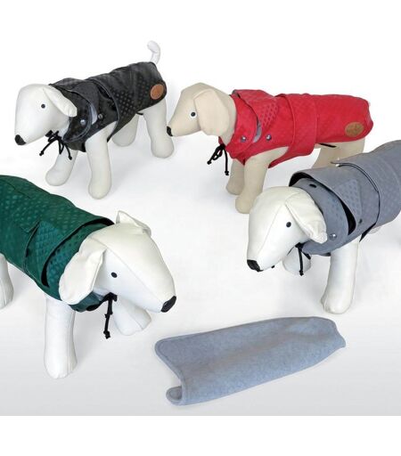 Impermeabile per cani in resistente tessuto impermeabile con cappuccio e interno pile staccabili. Dotato di foro per guinzaglio.Colori disponibili: verde - nero - rosso - grigioTaglie disponibili: da 18 a 33 cm ...