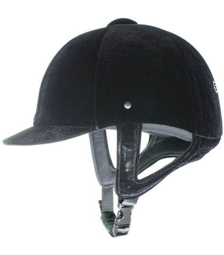 Cap Derby omologato CE modello tradizionale con allacciatura imbottita. Esterno in velluto e visiera flessibile. ...