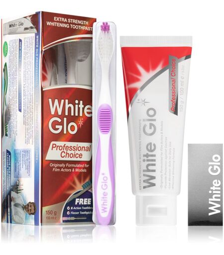 White Glo Professional, , Dentifrici sbiancanti unisex, I denti sani di un bianco splendente sono i più belli. Il set di cosmetici White Glo Professional ti fornisce la cura necessaria per avere denti bellissimi con cui avrai sempre voglia di sorridere. Il set contiene: spazzolino da denti 1 pz dentifricio sbiancante 150 g scovolini interdentali 8 pz Caratteristiche: fornisce una delicata cura delle gengive e dello smalto dei denti sbianca i denti rinfresca l’alito pulisce i denti previene la formazione della carie Modo d’uso: Applicare il dentifricio sullo spazzolino, inumidire, lavare i denti e la cavità orale. Sciacquare abbondantemente. Utilizzare almeno 2 volte al giorno. ...