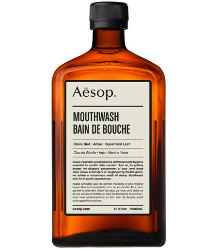 Questa formulazione priva di alcol fornisce una soluzione all'alito cattivo senza alterare la produzione di saliva e il pH naturale della bocca. Per proteggere la soddisfazione olfattiva di chi vi sta vicino, bevete un sorso abbondante e fate dei gargarismi prima di ogni apparizione in pubblico. Profumo: Menta, spezie, anice Applicazione: Fare gargarismi con 20 ml di collutorio per 30-60 secondi, quindi sputare. Usare al mattino e alla sera dopo aver lavato i denti o secondo necessità. Aesop Aesop è stata fondata a Melbourne nel 1987 e da allora sviluppa prodotti che danno la priorità all'efficacia - le loro fragranze complesse e distintive sono solo un'aggiunta. Oggi la gamma di prodotti comprende prodotti per la cura della pelle, dei capelli e del corpo, oltre a profumi e accessori per la casa. Alcuni degli ingredienti utilizzati sono di origine vegetale, altri sono creati in laboratorio; tutti sono di provenienza etica e di comprovata sicurezza. Aesop - una Certified B Corporation™ - non testa le sue formule e i suoi ingredienti sugli animali. Tutti i prodotti Aesop sono vegani, certificati dal Leaping Bunny e inseriti nell'elenco dei prodotti vegani e cruelty-free della PETA. ...