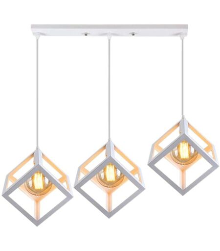 AXHUP 3 Fili Lampadario Vintage, Creativo Lampada da Soffitto, Industriale Stile Illuminazione con Cubo Geometria Gabbia E27 per Cucina Sala da Pranzo