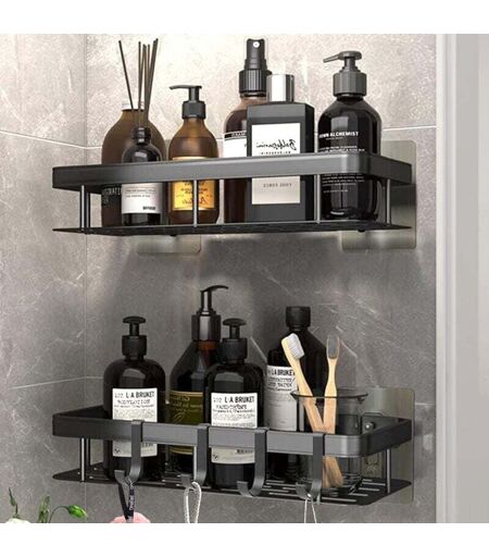 Nazalus - Offerta Speciale - Set di 2 portaoggetti da doccia senza foratura, mensola da parete in alluminio per bagno con 4 ganci, supporto per