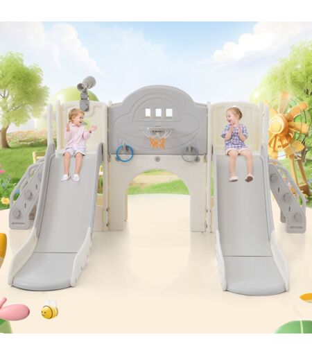 MODFU Scivolo per bambini 8 in 1, 2 scivoli, arrampicabile, forabile, con supporto per basket, adatto per interni/esterni, scivolo da giardino, hdpe,
