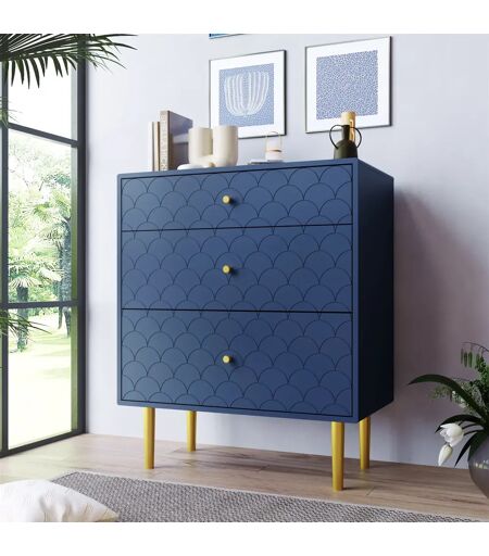 Other Comodino a 3 cassetti per comodino per camera da letto, design a squame di pesce, Navy Blue-H89/L75/P40 cm