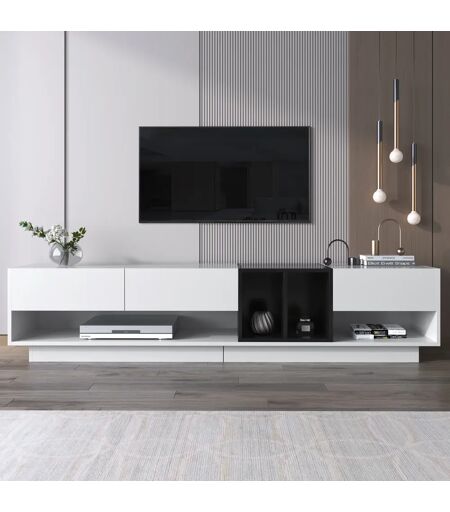 Nessuno Mobile TV con 3 cassetti e spazio portaoggetti aperto, design bicolore bianco e nero, mobile soggiorno drink, 190x40x42 cm