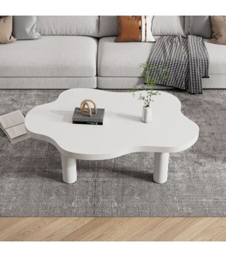 OKWISH - Tavolino da caffè bianco irregolare, tavolino laterale a tre gambe, per soggiorno, camera da letto, ufficio o cortile, 100x70x40 cm