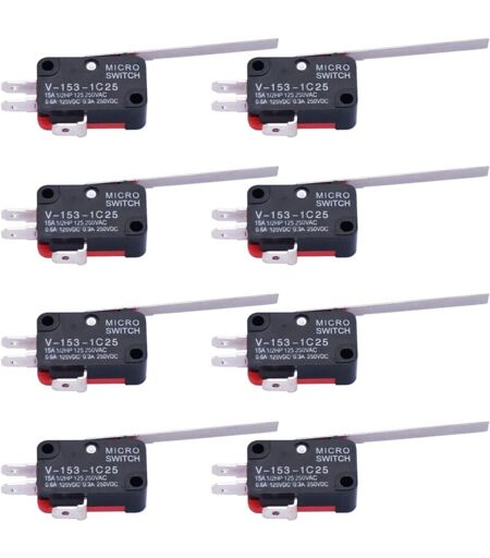GOTRAYS - 10 pezzi Micro Interruttore Cerniera Lunga Dritto Braccio Leva spdt Azione Rapida Interruttore di Finecorsa per Arduino V-153-1C25