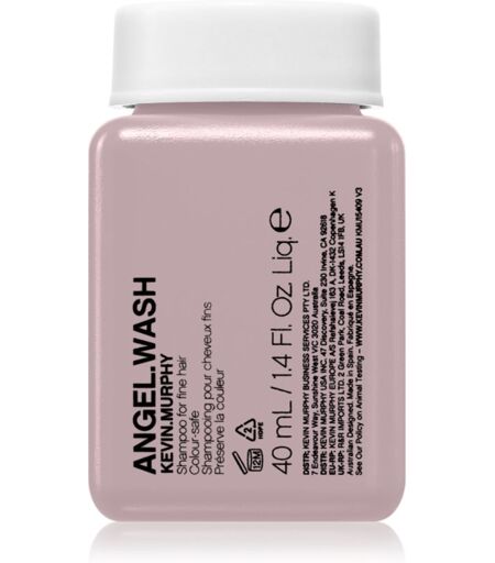Kevin Murphy Angel Wash, 40 ml, Shampoo per donna, Lo shampoo Kevin Murphy Angel deterge efficacemente il cuoio capelluto, lava accuratamente i capelli e ne ripristina la naturale bellezza. Caratteristiche: rigenera e nutre i capelli prolunga la durata del colore dei capelli ...