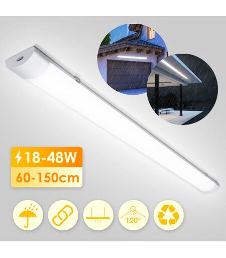 " ✅【Alto livello di protezione】 La nostra plafoniera LED è impermeabile e antipolvere IP65. adatta per uso interno ed esterno. ✅【 Collegabile】 Il nostro apparecchio LED a prova di umidità può collegare più apparecchi in serie. risparmiando costi e tempi di installazione. ✅【3 Metodi di montaggio】 Il montaggio è abbastanza semplice e sono possibili 3 diversi metodi di montaggio (soffitto. parete. catena). La lampada può anche essere appesa. ma è necessaria una fune metallica (la confezione non include la fune metallica). Efficienza energetica A+++ Grazie alla moderna tecnologia LED. hanno un'elevata efficienza luminosa e proprietà di risparmio energetico che le rendono un sostituto ideale delle lampade fluorescenti tradizionali. ✅【Vasta gamma di applicazioni】 La nostra lampada a led ultrasottile a prova di umidità è adatta per officina. bagno. grandi magazzini. ufficio. garage. cantina. bagno. cucina. banco di lavoro. fabbriche. parcheggi. tettoia. sala hobby. spogliatoio. giardino. ...