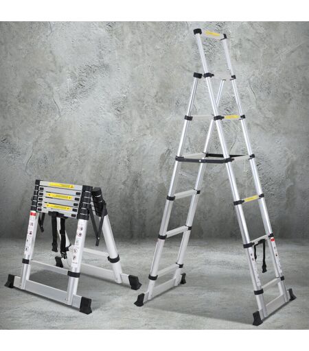 HENGDA Swanew Scala telescopica fino a 150 kg Scala a gradini stabile in alluminio Con trave d'equilibrio 1.7m+2.0m