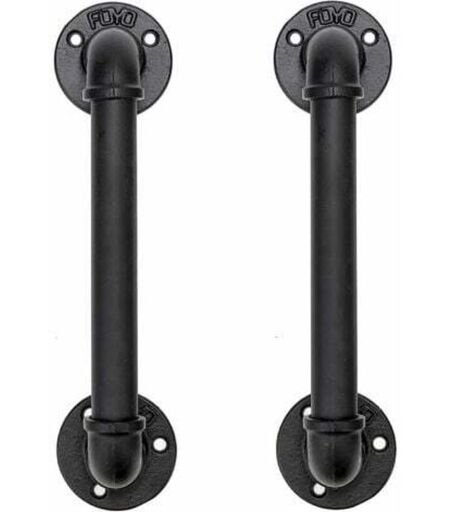 SERBIA Set di 2 maniglie per porte in tubo industriale, barra di sostegno, maniglie per porte da fienile, ghisa rustica antica per ringhiera, nero, 30 cm di