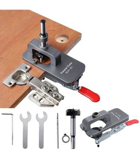 CHOYCLIT Dima di posizionamento per foratura cerniere da 35 mm, dima per foratura fori porta, dima per foratura cerniere a tazza + fresa per legno, sega a