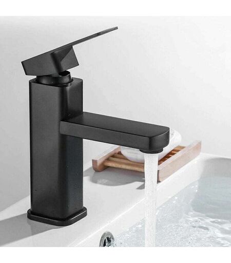 CHOYCLIT Robinet Salle Bain Noir Mat Modern, Robinet Lavabo Salle de Bain Design Elégant, Mitigeur Lavabo Noir en Laiton, Mitigeur Salle de Bain avec Aérateur
