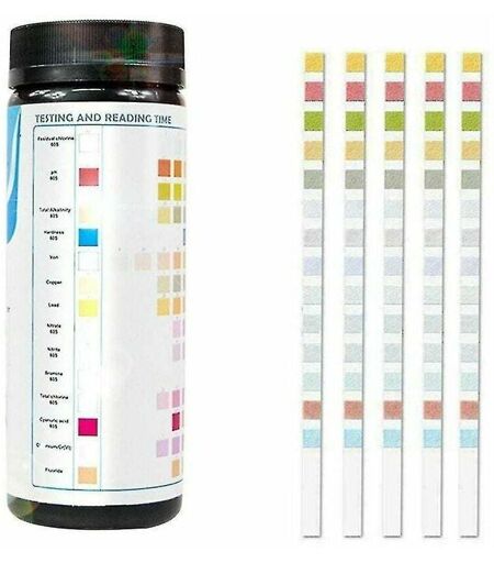 Descrizione Caratteristiche: Aggiornamento 14 in 1: testa alcalinità totale, pH, durezza, piombo, rame, ferro, mercurio, cromo/cromo (VI), bromo, nitrato, nitrito, cloro residuo, fluoro, solfito Salute: le strisce reattive sono utilizzate per acqua potabile, acqua del rubinetto, acqua di pozzo, serbatoi di acqua dolce e altri test di qualità dell'acqua. Utilizza strisce reattive professionali per l'acqua potabile per la salute per testare gli standard di qualità dell'acqua. Facile da usare: immergi la carta reattiva per l'acqua potabile nell'acqua per 5 secondi, tienila in aria per circa 30 secondi, quindi regola il colore del retro della bottiglia per ottenere la lettura. Anche per i principianti, le strisce reattive per l'acqua potabile sono facili da usare. Ecologico: realizzato in materiale PET ecologico. Facile da trasportare: circa 14 cm di lunghezza, peso circa 7 once, facile da trasportare. Istruzioni per l'uso: 1. Immergi la striscia reattiva in acqua per 5 secondi. 2. ...