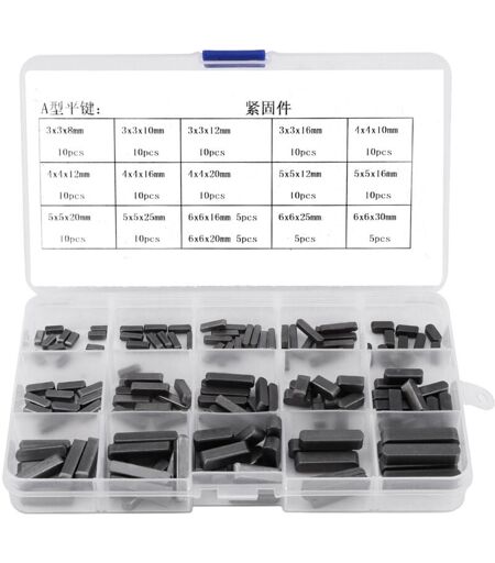Description : Cet ensemble de clés à plume à bout rond est fabriqué en acier au carbone A3 de haute qualité, antirouille, résistant à l'usure, précis et lisse. La boîte en plastique facilite la reconnaissance et le stockage de vos clés parallèles. Il convient à la fixation de nombreux équipements différents. Caractéristiques : Combinez une taille mixte de 8 mm, 10 mm, 12 mm, 16 mm, 20 mm, 25 mm, 30 mm, pour répondre à vos différents besoins. Antirouille, résistant à l'usure et grande capacité d'expansion. 140 pièces suffisent pour plusieurs choix. Équipé d'une boîte en plastique, vous pouvez classer ces clés à plume de manière organisée, plus pratique à transporter et à emporter. Processus précis, surface lisse, sans flou. Principalement utilisé pour fixer les équipements démontés fréquemment. Spécifications : Matériau : acier au carbone A3 Poids : 400 g Contenu : 3 x 3 x 8 mm, 10 pièces 3 x 3 x 10 mm, 10 pièces 3 x 3 x 12 mm, 10 pièces 3 x 3 x 16 mm, 10 pièces 4 x 4 x 10 mm, 10 ...