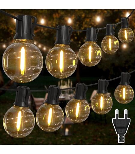 TREETALK Luci a stringa da esterno da 30 m, con 50+2 lampadine LED G40 IP45 impermeabili, luci a stringa da esterno bianche calde per patio, matrimoni, Natale