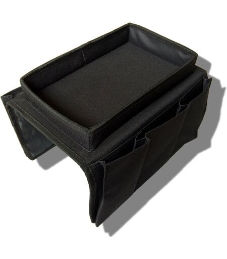 QIYAO Vassoio portaoggetti per bracciolo divano, organizer multitasche, porta telefono, riviste, snack, bicchieri, telecomando, tablet, tazza (nero)