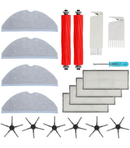 Compatibilità perfetta con la serie S7 per una pulizia ottimale. I nostri accessori sono progettati specificamente per funzionare con la serie Roborock S7. La confezione comprende 2x spazzola principale arancione. 4x salviette. 6x spazzole laterali nere. 4 filtri HEPA. 2 diversi strumenti di pulizia con spazzola bianca e 1x cacciavite con impugnatura blu. Tutto ciò che serve per una pulizia accurata. Materiali di alta qualità per una pulizia efficace Le spazzole principali sono realizzate in silicone resistente e offrono un'eccezionale potenza di pulizia rispetto alle spazzole originali dell'S7. I panni sono realizzati con microfibre antibatteriche selezionate. delicate sui pavimenti e in grado di rimuovere facilmente le macchie più ostinate. I vantaggi di una pulizia potente ed efficace. Filtri ecologici e riutilizzabili per un'aria interna pulita I nostri filtri sono realizzati in materiale ecologico ad alta resistenza. È possibile pulirli semplicemente con acqua calda e ...