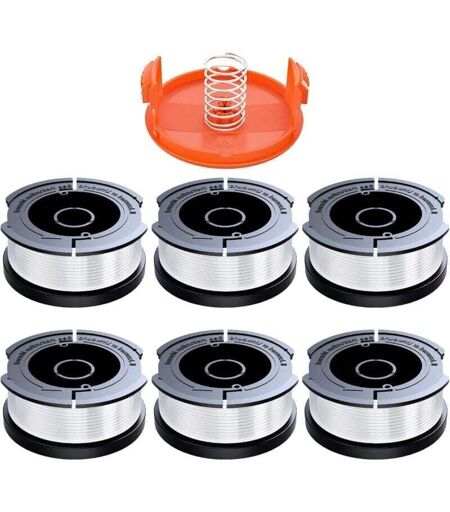BEIJIYI Bobina di filo per decespugliatore da 6 pezzi compatibile con Black and Decker, Ø1,65 mm con filo per decespugliatore da 9 m, contiene 1 copri bobina
