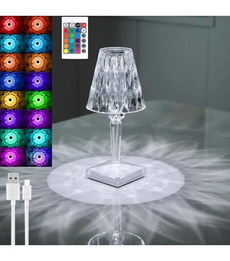 TONCHEAN Lampada da tavolo in cristallo di diamante, lampada da comodino in cristallo ricaricabile tramite USB, temperatura/luminosità regolabili, batteria al