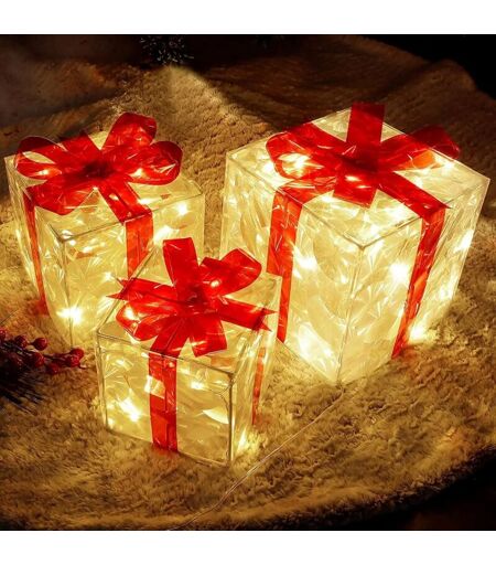 Illuminazione affascinante: la scatola regalo illuminata è realizzata in materiale trasparente, che lascia passare facilmente la luce. Quando illuminato À Attraverso la scatola, si riflette sulla superficie ed emette una lucentezza più bella, rendendo l'intera scatola Scatola regalo con luci di Natale: la scatola regalo con luci di Natale è realizzata in PVC resistente, perfetta per Natale, matrimoni, banchetti, compleanni e casa, ufficio, ristorante, hotel, bar, ecc. Decora la tua casa con queste bellissime scatole natalizie illuminate, perfette per decorare la tua casa o il tuo patio. Design classico: la superficie della scatola regalo è ricoperta da un motivo a fiocco di neve. Quando la luce colpisce la scatola, rimbalza sulla superficie, emanando un'atmosfera da fiaba natalizia, rendendo l'intera scatola scintillante e piena di Natale. La scatola è decorata con fiocchi e coni multicolori. La scatola è dotata di luci calde che creano l'effetto della vigilia di Natale. Dimensioni ...