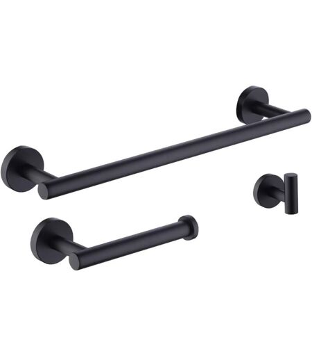 TONCHEAN Amazon Set di accessori per il bagno da 3 pezzi, nero, portasciugamani, porta carta igienica, gancio appendiabiti, montaggio a parete, acciaio