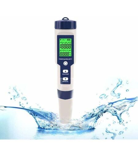 TONCHEAN Misuratore elettronico di pH, tester di pH 5 in 1, termometro tascabile, qualità dell'acqua, pH, ec, sale, tds per acqua di casa, piscina e acquario