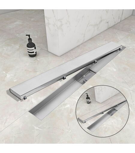 OCEAN ITALY - Canalina doccia a pavimento 80cm con panello piastrellabile 2-in-1 in acciaio inox scarico doccia con sifone antiodore spazzolato
