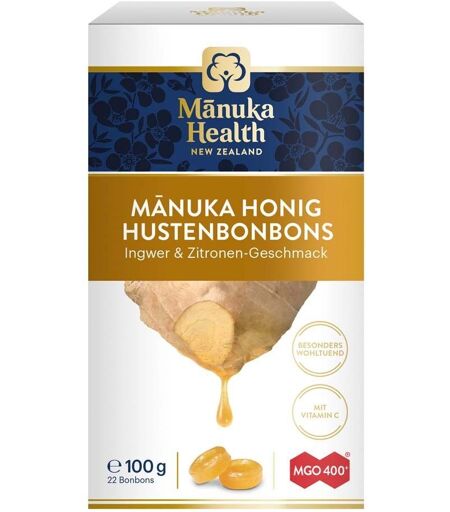 Miele di Manuka Mgo™ – Prodotto con il nostro prezioso miele di Manuka Mgo™400+ con una concentrazione di oltre 400 mg di Mgo™ (metilgliossale) per kg di miele. Lecca lecca confezionati singolarmente Contenuto naturale al 100% - Senza coloranti, aromi o dolcificanti artificiali; senza glutine Adatto ai vegetariani Contenuto Zucchero di canna, sciroppo di glucosio, Mgo™400+ Miele di Manuka (Leptospermum scoparium, 8%), acqua, estratto di zenzero, olio di limone, vitamina C. Valori nutrizionali e risultati di analisi basati su 100 ml Energy : 1690 kJ / 404 kcal Grassi: 0,2 g - di cui acidi grassi saturi: 0,1 g Carboidrati: 99 g - di cui zuccheri: 71 g Proteine: 0,3 g Sale: ...