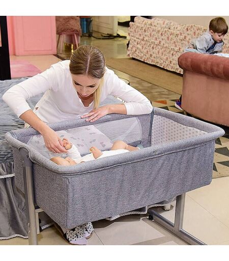 HALOYO - Culla da Campeggio Pieghevole e Regolabile con Ruote ®,96 x 57 x 77 cm,grigio chiaro