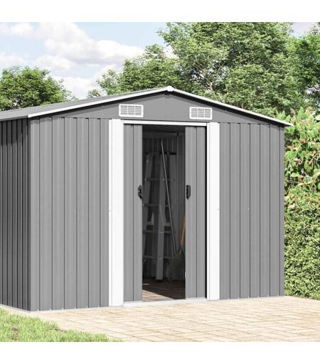 Il nostro capannone in metallo sarà perfetto per riporre un'ampia varietà di attrezzi, mobili da giardino e attrezzature da giardino. La casetta da giardino non offre solo protezione da sporco e polvere, ma anche da vento e intemperie. Questa casetta di stoccaggio ha prese d'aria sia nella parte anteriore che posteriore, garantendo un'eccellente ventilazione. Le sue doppie porte scorrevoli nella parte anteriore consentono un facile ingresso e uscita. Grazie alla struttura in acciaio zincato e alla finitura verniciata a polvere, il capannone per attrezzi è durevole e resistente. Il magazzino da esterno necessita di montaggio. Colore: grigio Materiale: Acciaio zincato Dimensioni complessive: 257 x 392 x 181 cm (L x P x A) Dimensioni porta scorrevole: 80 x 154 cm (L x A) Superficie del pavimento: 245 x 378 cm (L x P) Dimensioni delle prese d'aria (ciascuna): 23 x 10 cm Con 4 prese d'aria Colore: grigio Materiale: Acciaio zincato Dimensioni complessive: 257 x 392 x 181 cm (L x P x A) ...