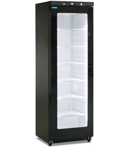 Vetrina espositiva nera statica con anta vetro e 6 ripiani temp da -15°C a -22°C capacità 400 lt