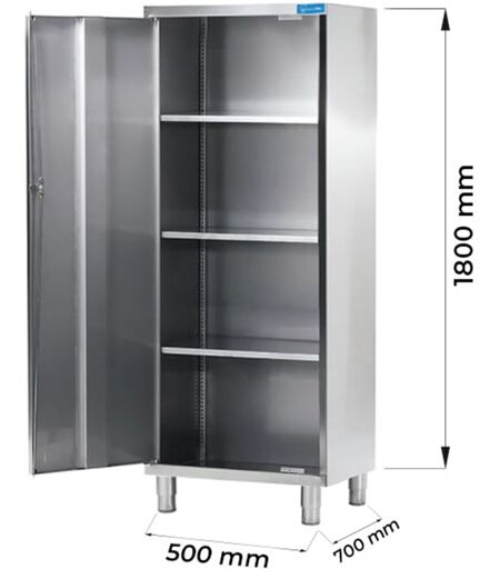 Armadio con porta battente in acciaio inox con 3 ripiani L500xP700xH1800 mm linea premium