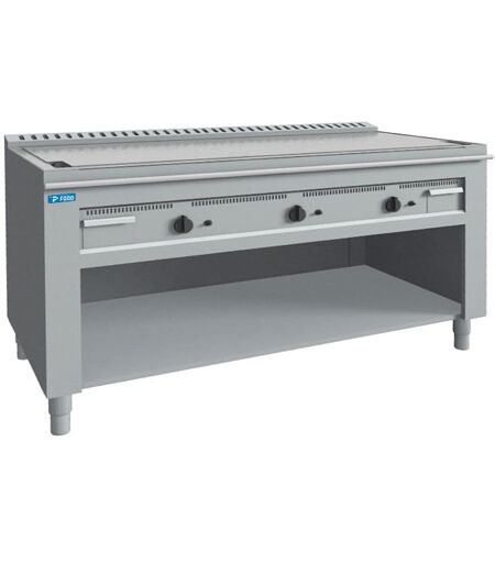 Piastra teppanyaki cromata a gas su base con 3 zone di cottura lunghezza 1600 mm